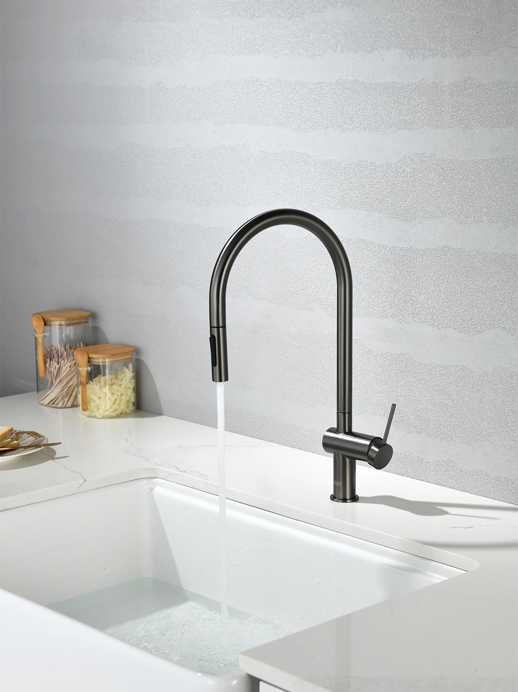 Смеситель для кухни с выдвижным изливом AQUAme Cucina темный металл AQM9901GM