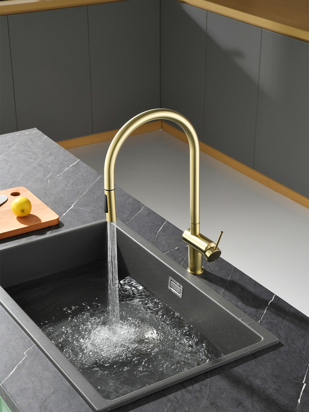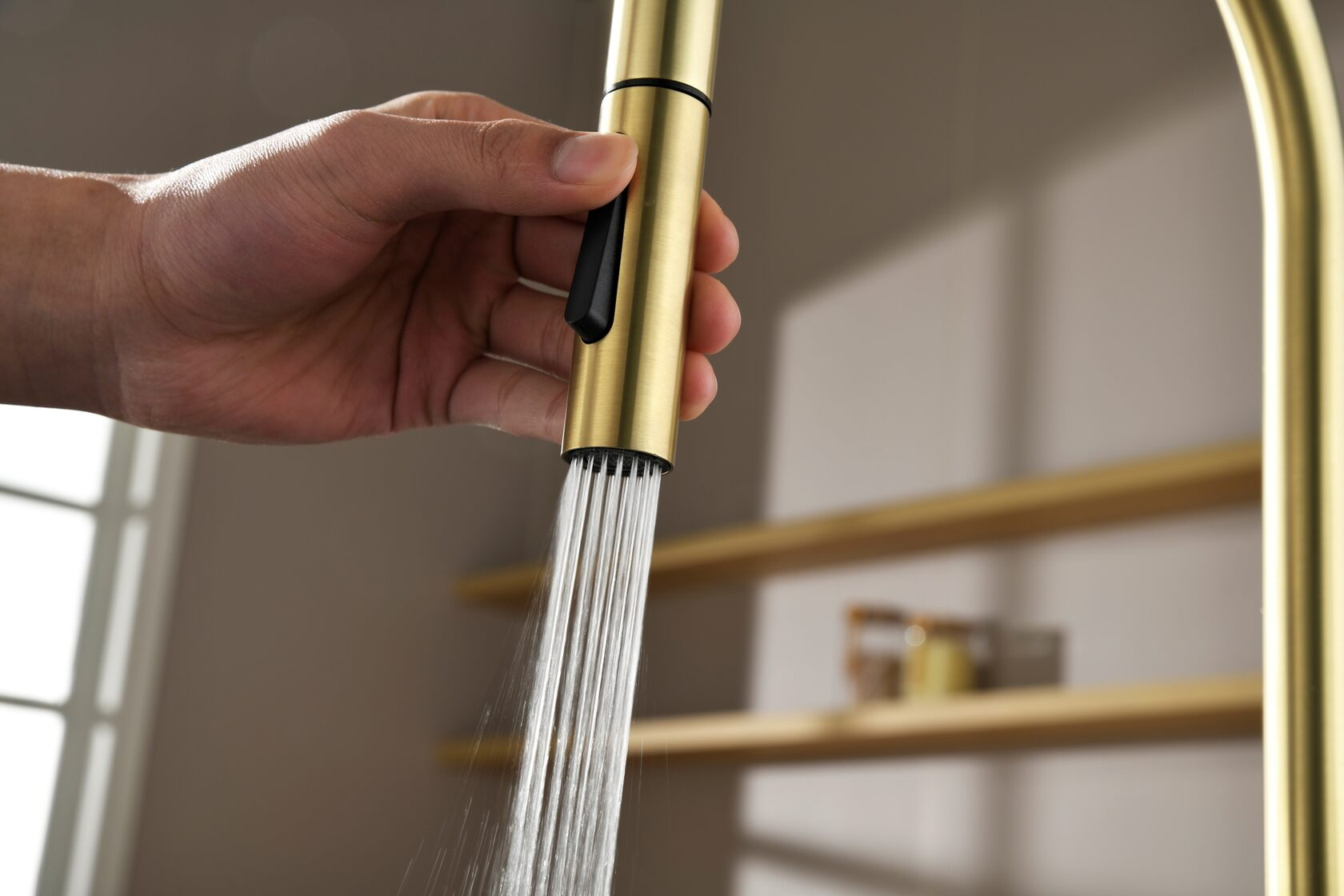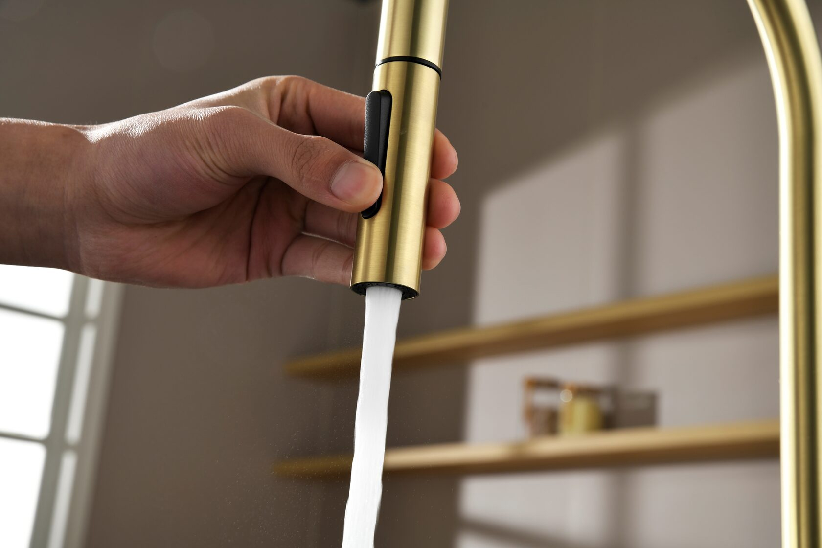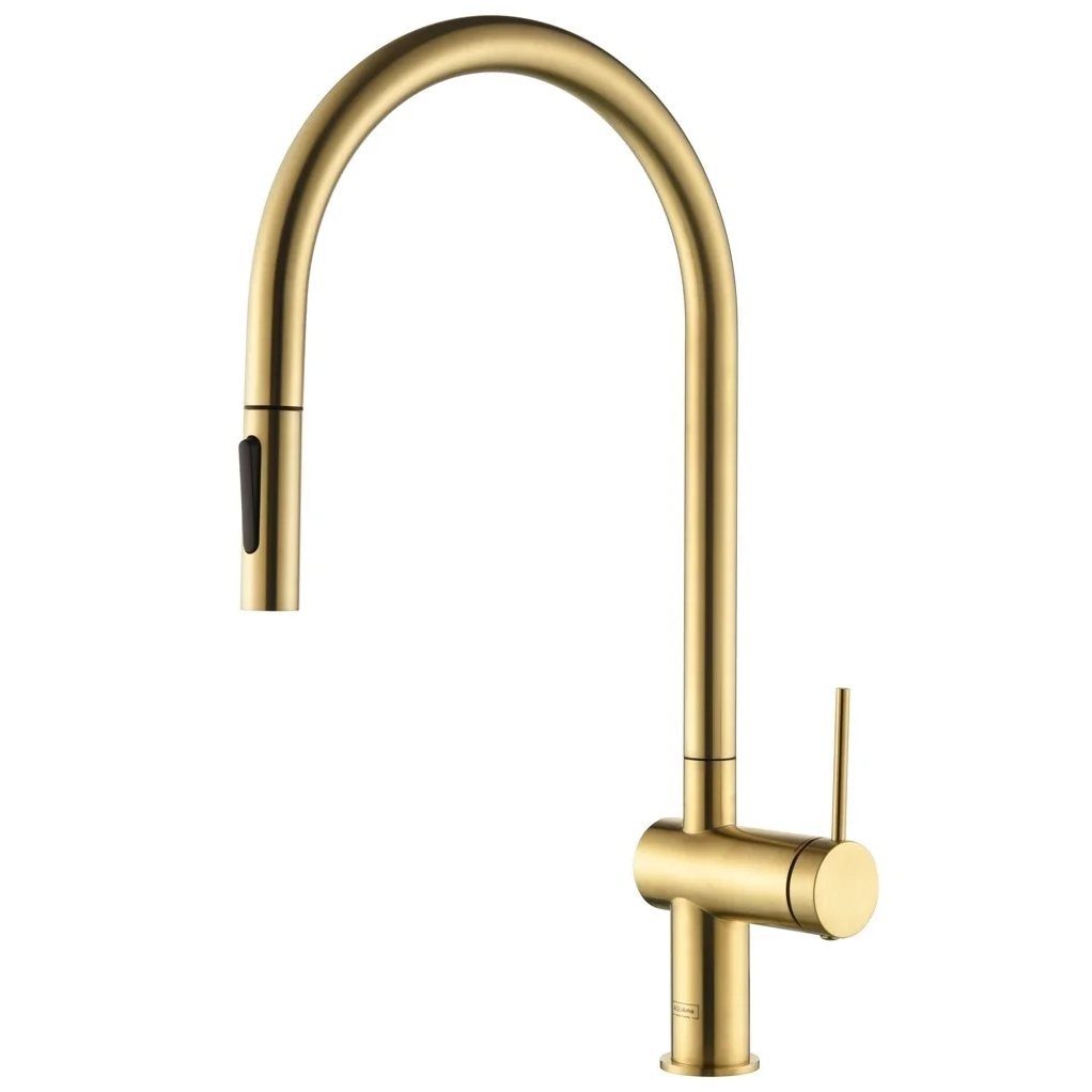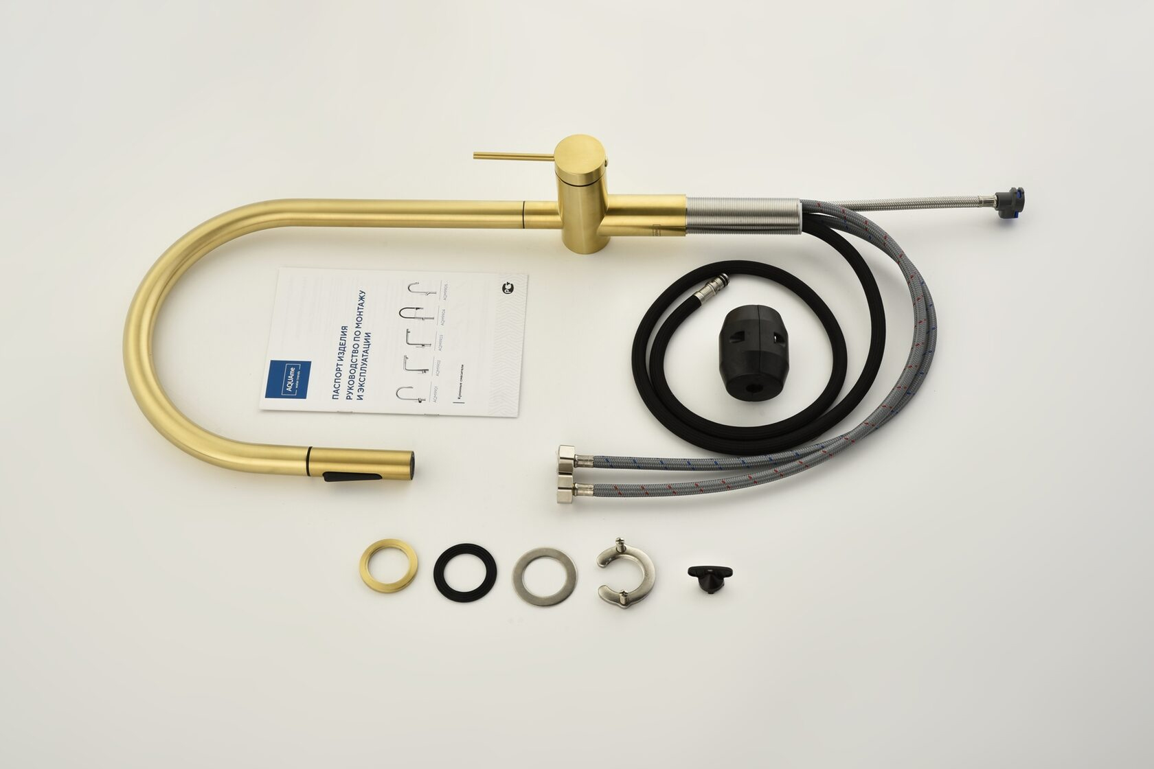 Смеситель для кухни с выдвижным изливом AQUAme Cucina золото шлифованное AQM9901BG