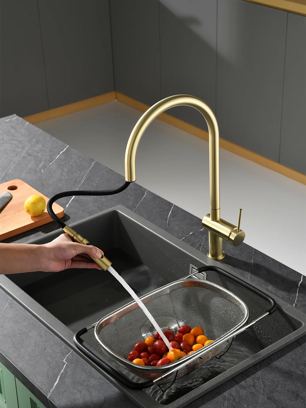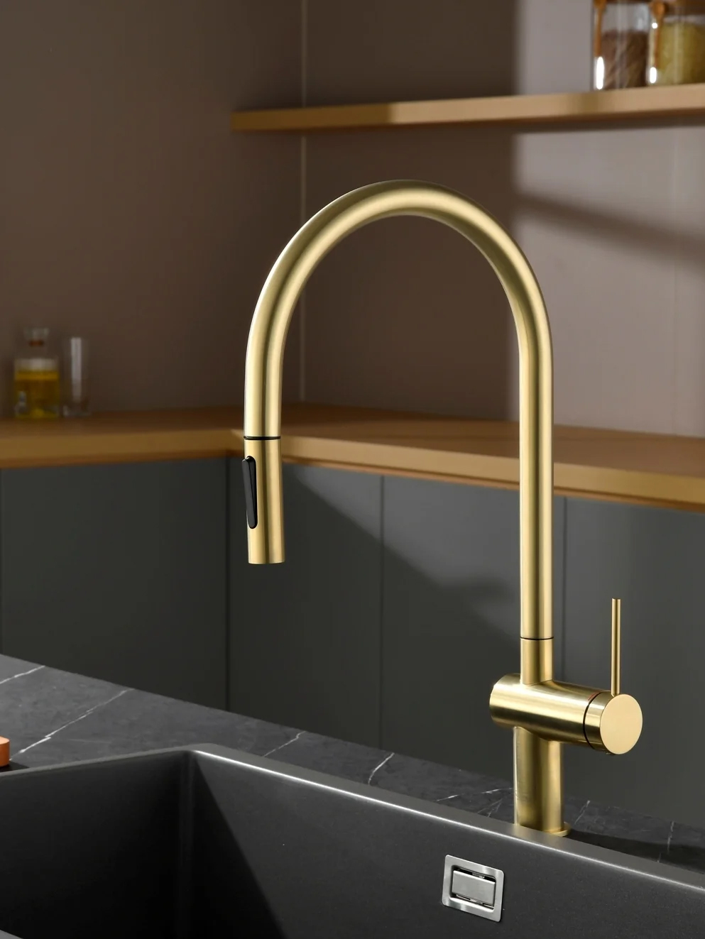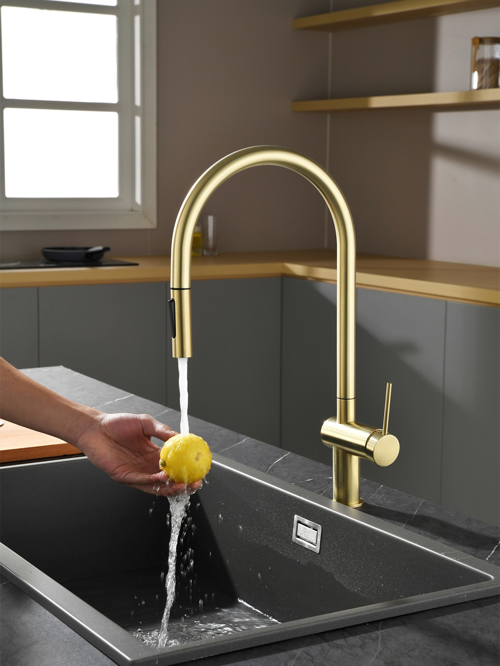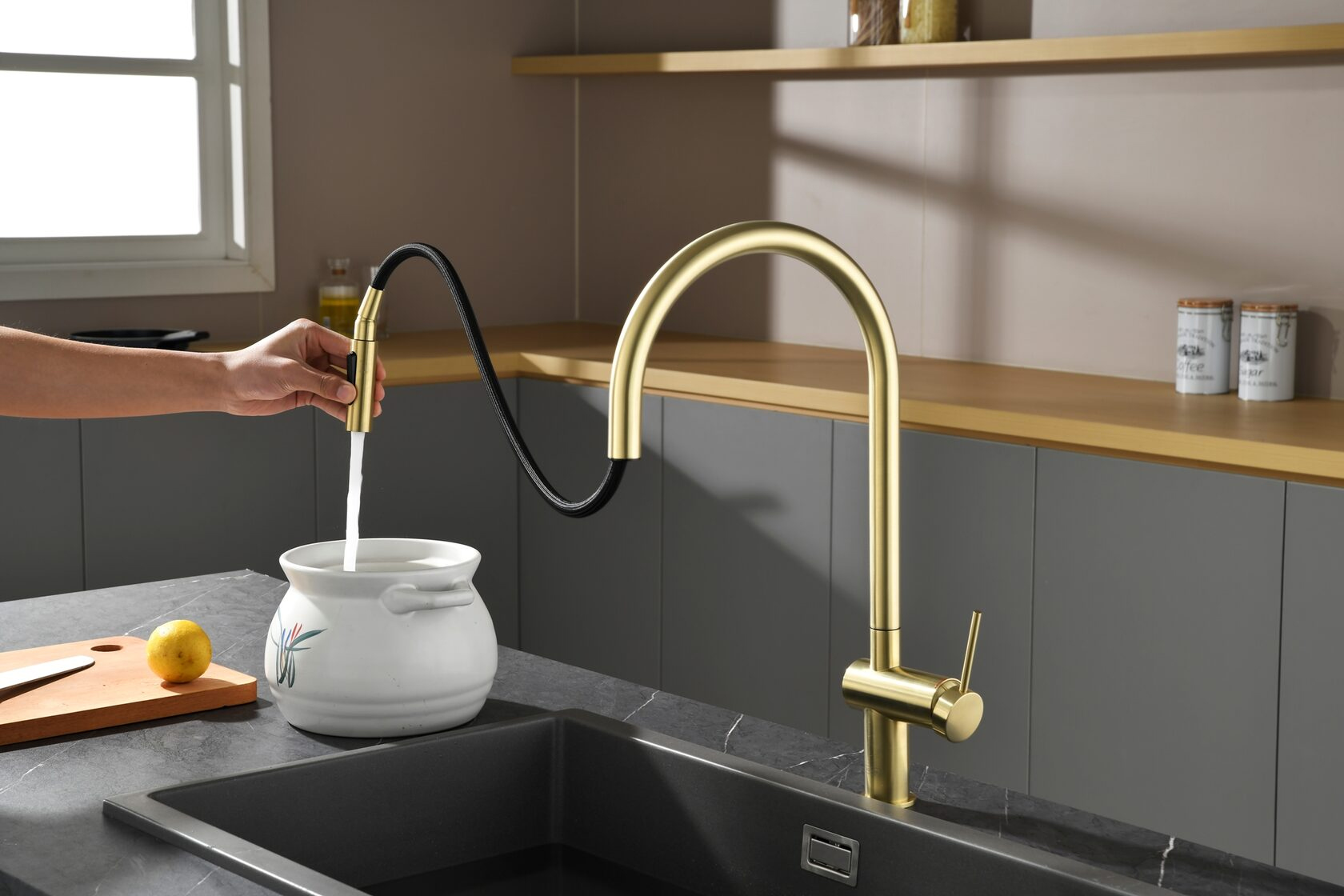 Смеситель для кухни с выдвижным изливом AQUAme Cucina золото шлифованное AQM9901BG