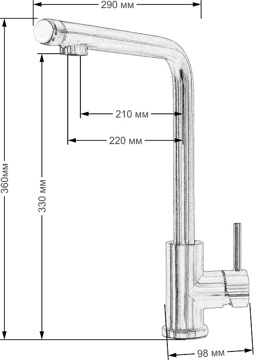 Длина излива: 220 мм