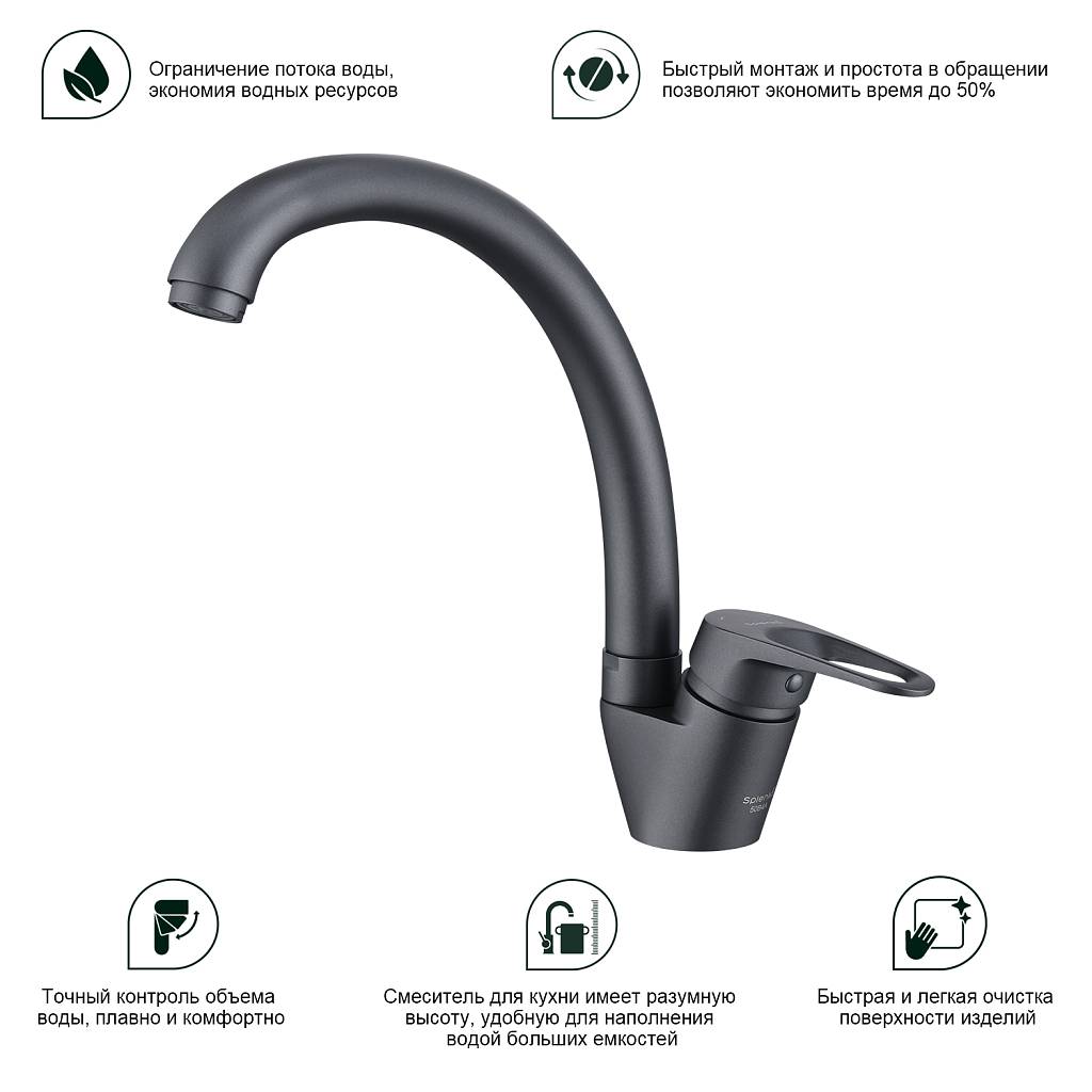 Смеситель для кухни Splenka S202.41.07 серый матовый