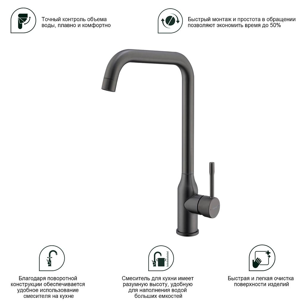 Смеситель для кухни Splenka S206.40.09 графит матовый