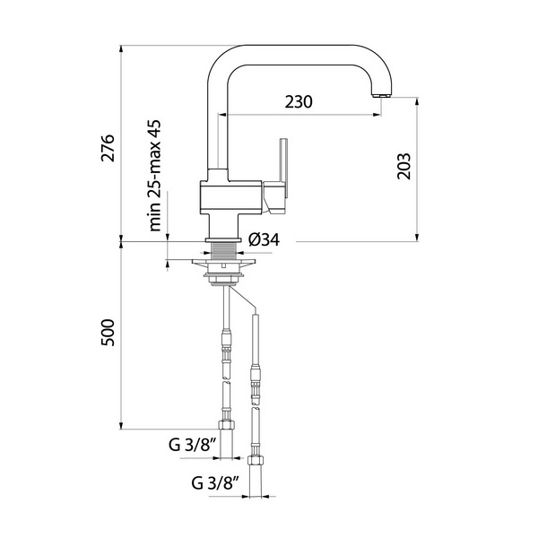Комплектация: смеситель, подводка