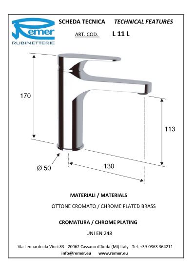 Cмеситель для раковины Remer Class Line L11L