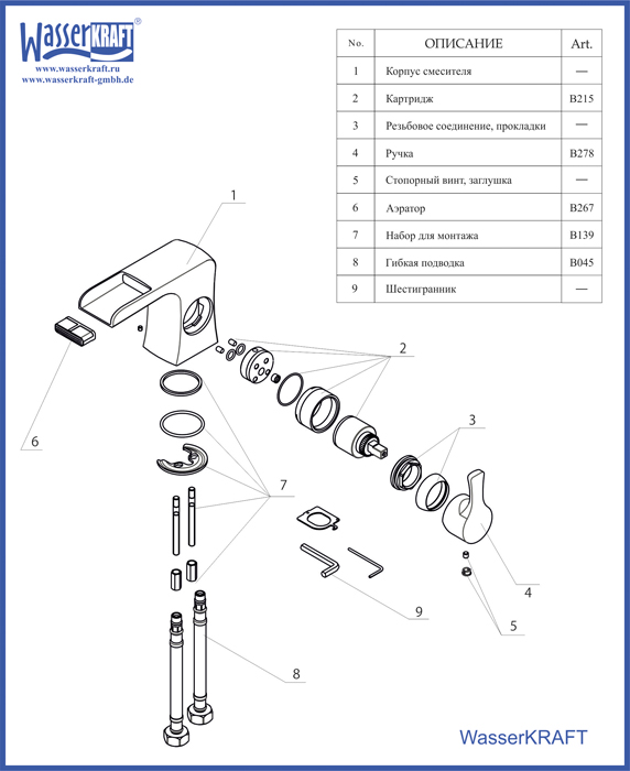 Каскадный смеситель для раковины WasserKRAFT Беркель (Berkel) хром 4869