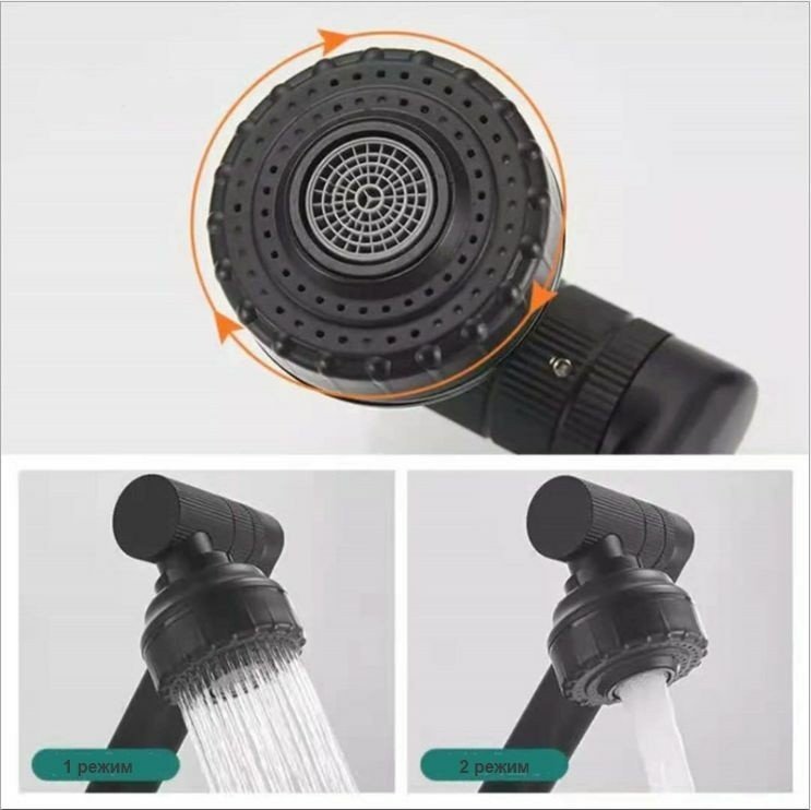 излив поворотный с подвижной насадкой 2 режима 360°, H=82-150 мм