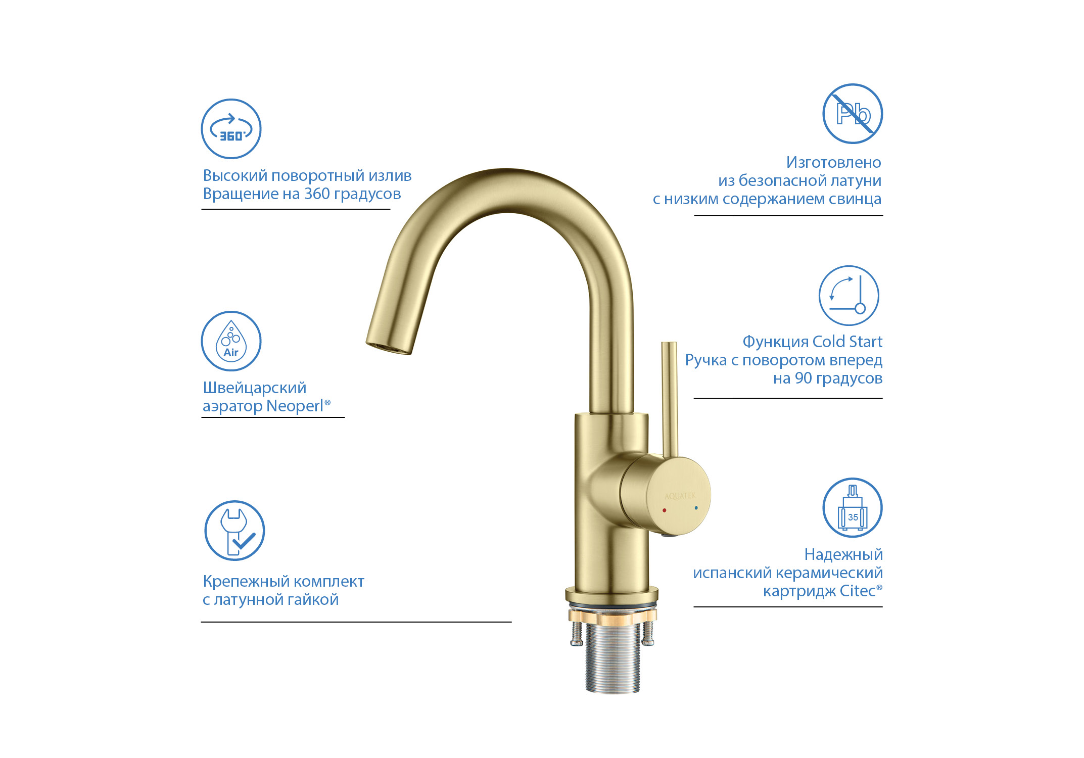 - Смеситель для раковины Акватек Европа шлиф золото AQ1307BG