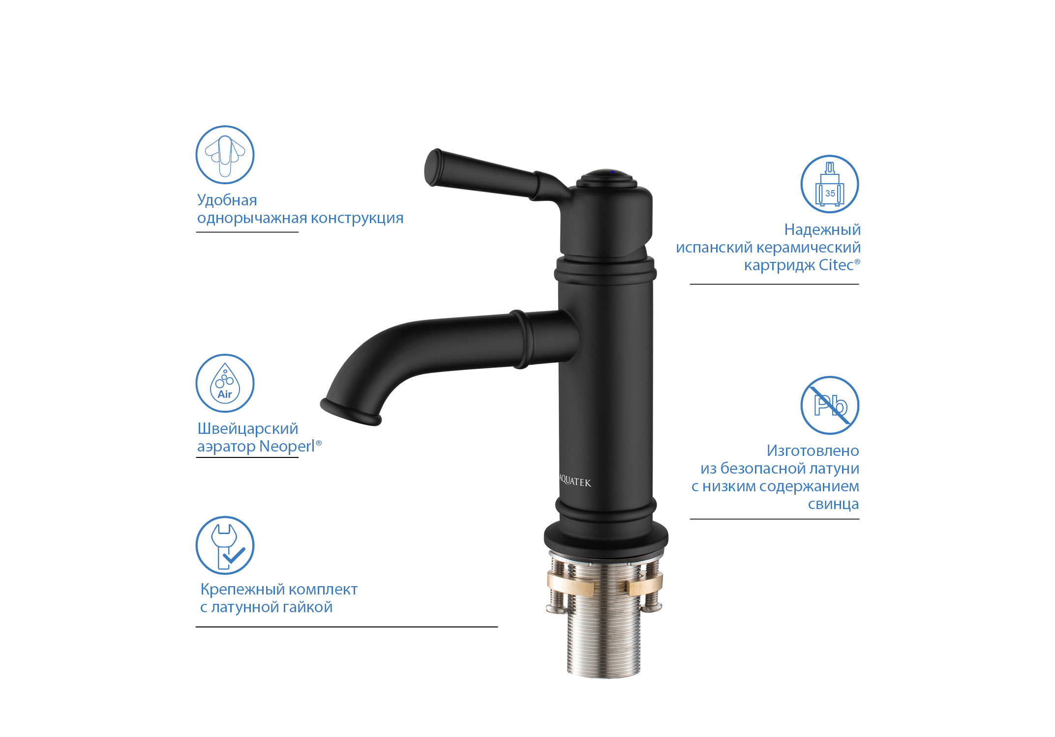 - Смеситель для раковины Акватек Классик 72 черный матовый AQ1510MB