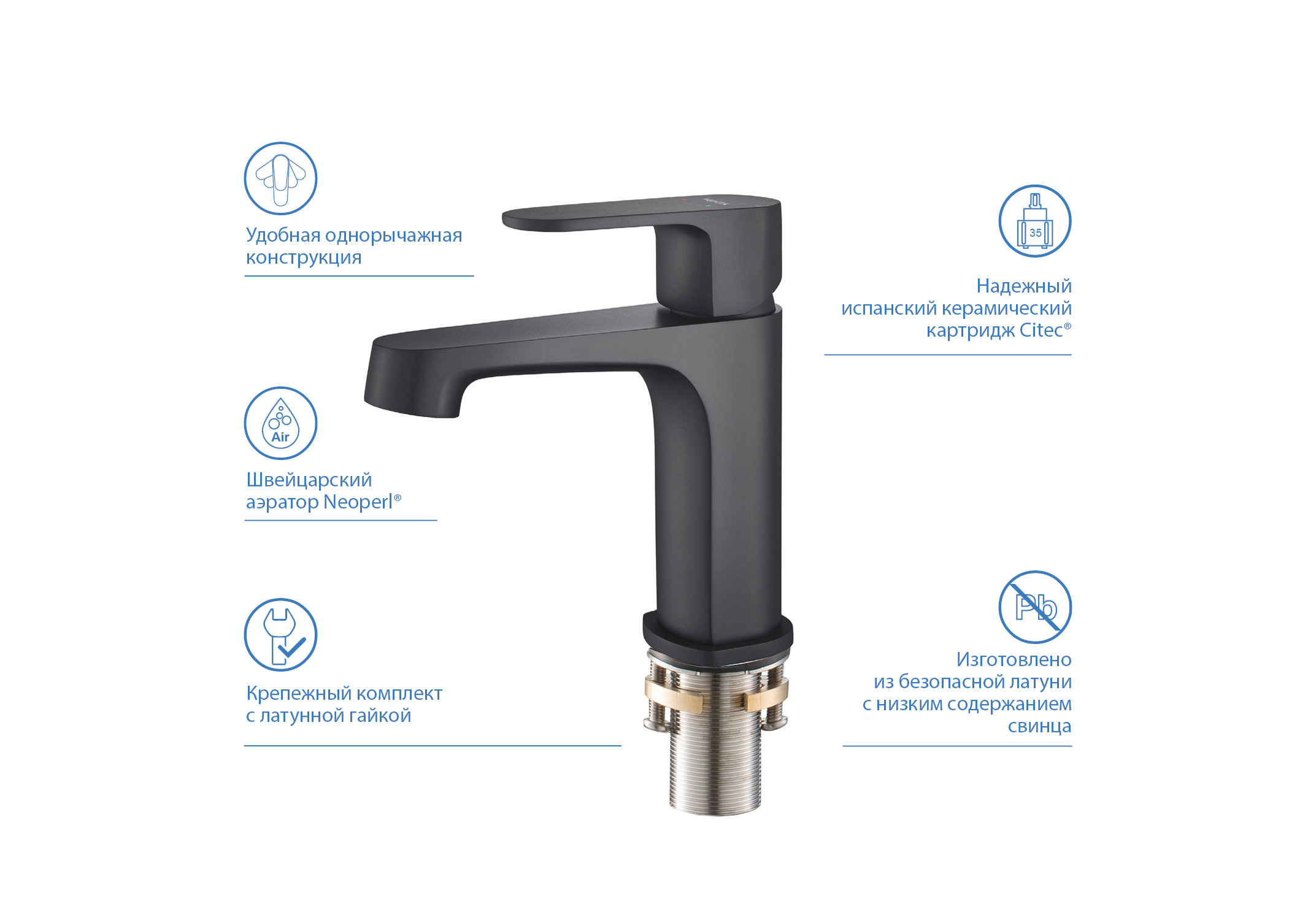 | Особенности | Картридж Citec 35мм, аэратор Neoperl |