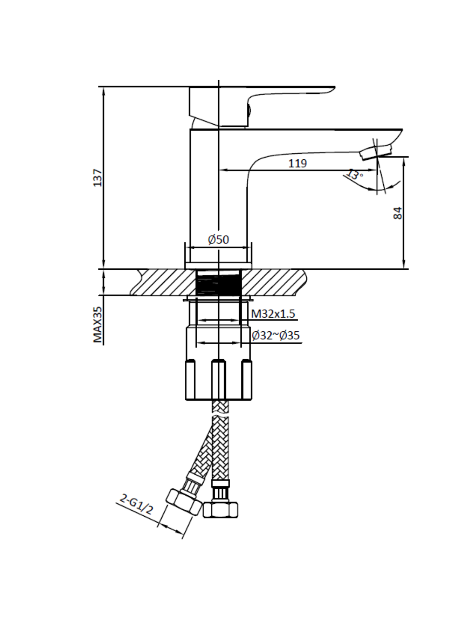 | Высота смесителя, см | 13,7 |