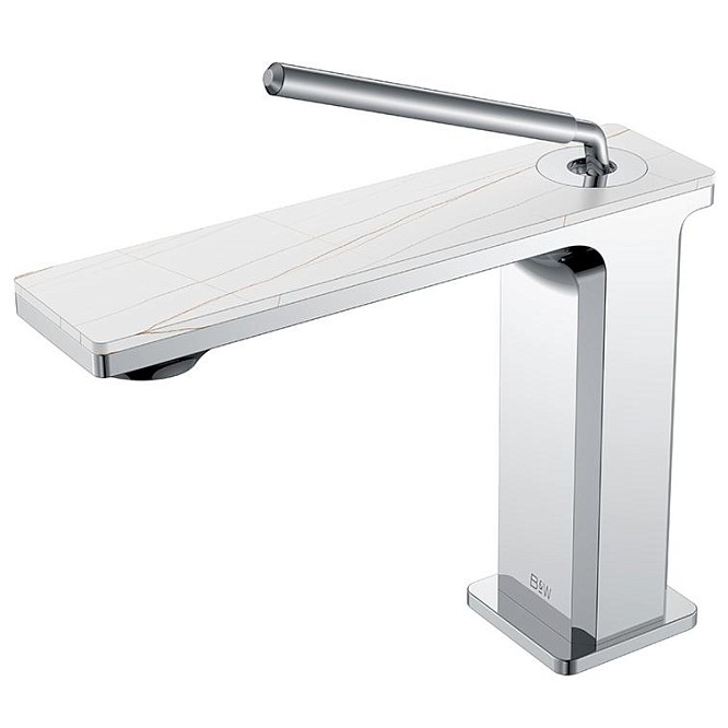 Смеситель для раковины Black&White – изделие с продуманной эргономикой и эффектным дизайном для Вашей новой ванной комнаты. Корпус изготовлен из сантехнической латуни марки HPB 59 – безопасного для здоровья сплава с высоким ресурсом. Управление потоком и настройка температуры воды происходит с помощью керамического картриджа повышенной пропускной способности, а на выходе для уменьшения разбрызгивания и экономии воды установлен аэратор. Важная стилистическая особенность - накладка на излив изготовленная из керамогранита с текстурой и рисунком белого мрамора. В формах продукта пересекаются цилиндрические и прямоугольные формы, что гармонично может дополнить концепцию ванной комнаты в экостиле.