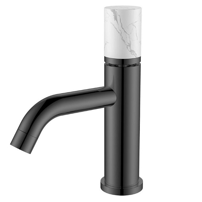 - Смеситель для раковины Boheme Stick ручка Mramor white графит глянец 121-SGM-MR-W