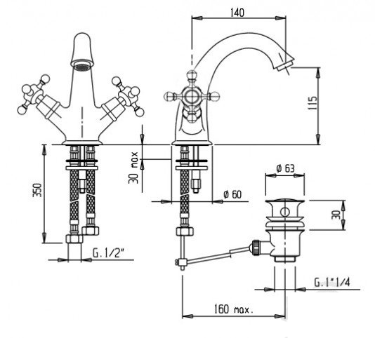 Смеситель для раковины Cezares Golf золото GOLF-LS1-03/24