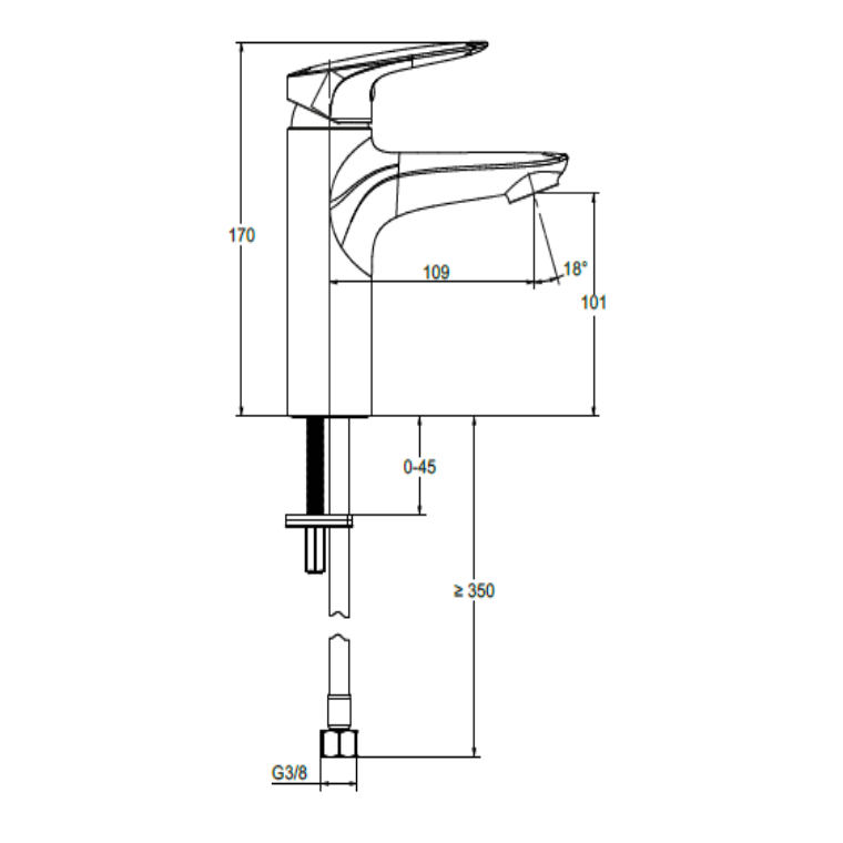 - 109 мм длина излива