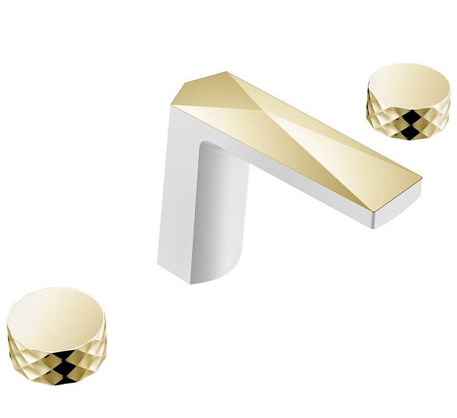 - Смеситель для раковины на 3 отв Boheme Venturo белый/ золото 150-WG-DIAMOND