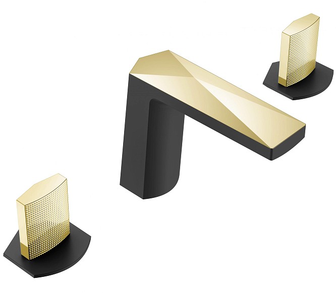 - Смеситель для раковины на 3 отв Boheme Venturo черный/ золото 150-BG-TOUCH