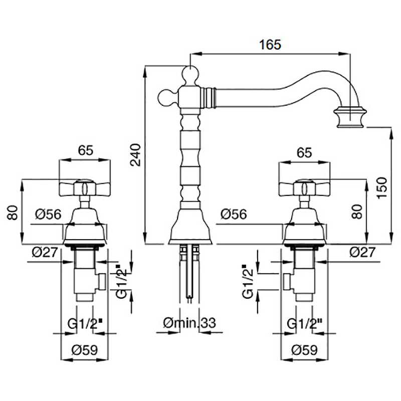 Смеситель для раковины на 3 отв. Migliore Princeton 19371 состаренный хром