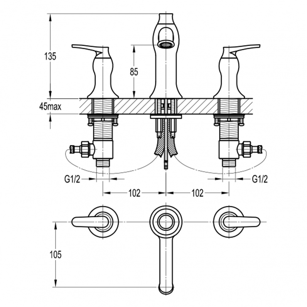 Смеситель для раковины на 3 отв Swedbe Terracotta Art 2550