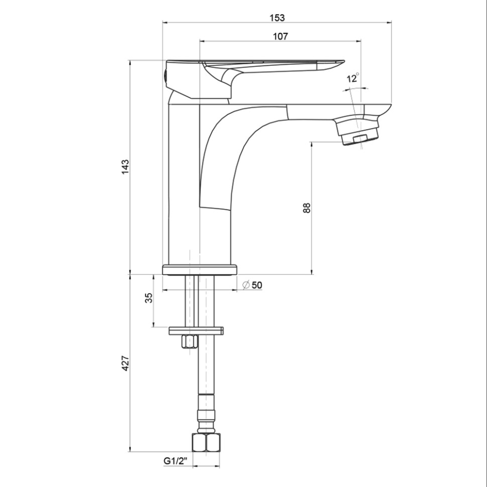 Высота излива: 88 мм