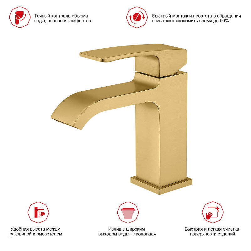Смеситель для раковины Raglo R02.10.03 сатин золотой