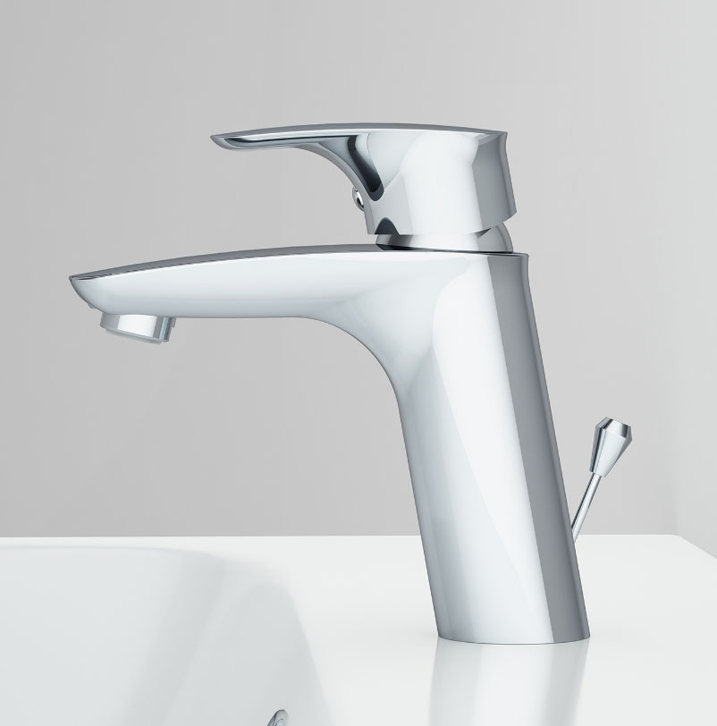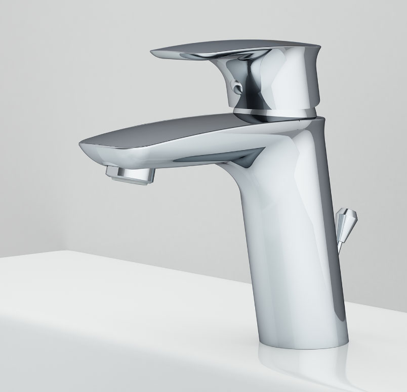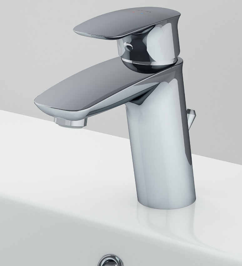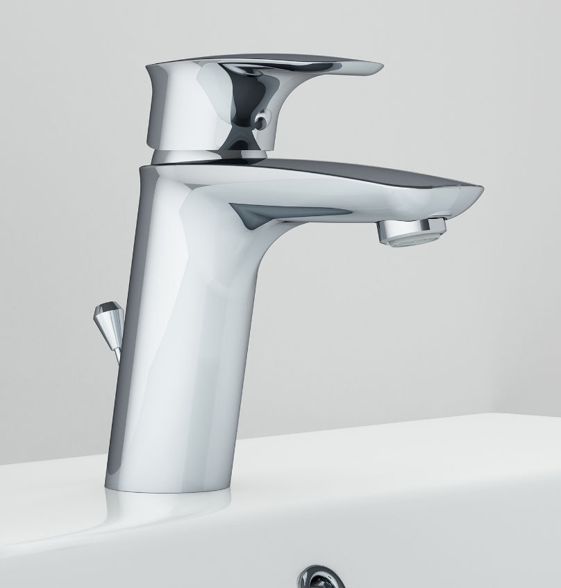 - безупречно продуманная форма ручки идеально ложится в ладонь. Наклон корпуса смесителя обеспечивает удобство использования на любой раковине
