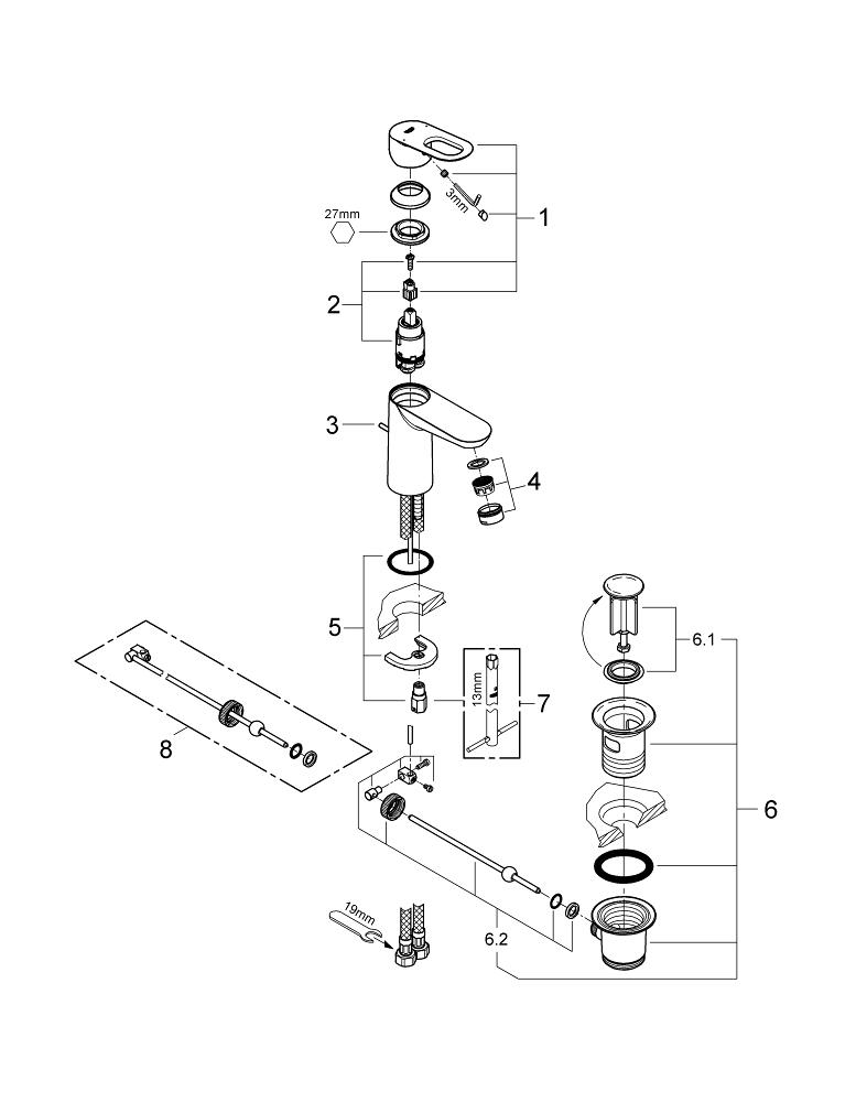 Смеситель для раковины с д/к Grohe BauLoop 23335000