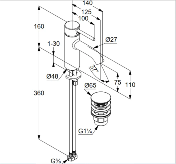 Смеситель для раковины с д/к Kludi BOZZ 38266N076 брашированное золото