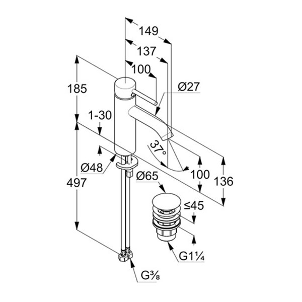 Смеситель для раковины с д/к Kludi BOZZ 382883976