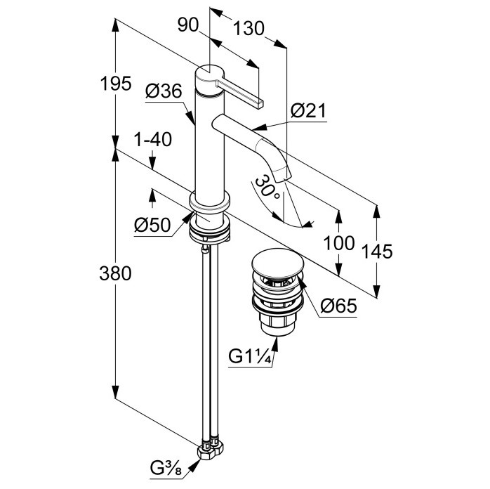 Смеситель для раковины с д/к KLUDI Nova Fonte Pura 202880515