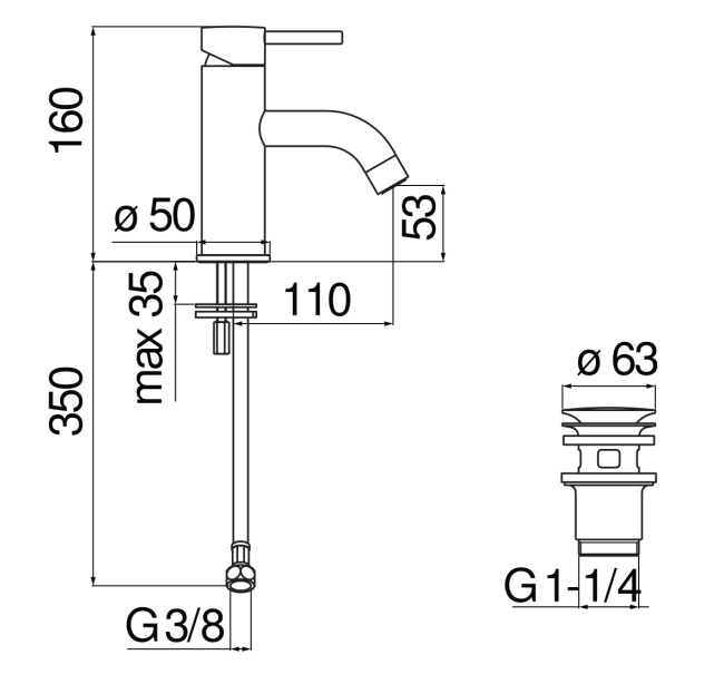 Нажимной слив ø 1 1/4”