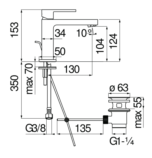 Смеситель для раковины с д/к Nobili UP UP94118/1BM