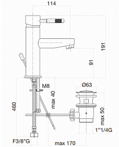 Комплектация: смеситель, подводка, донный клапан