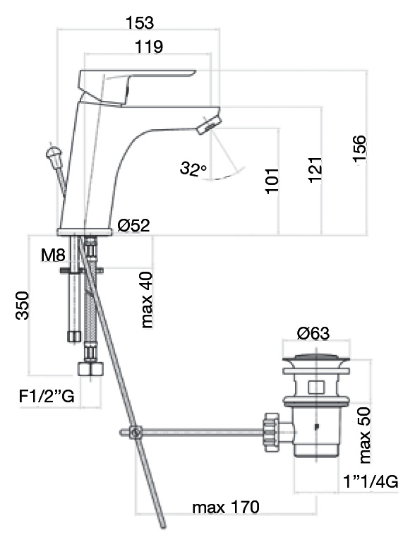 Смеситель для раковины с д/к Webert Sax Evolution хром SE833102015