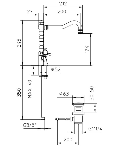 | Высота излива, см | 17,4 |