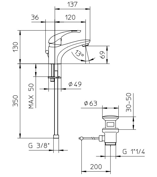 | Длина излива, см | 13,7 |