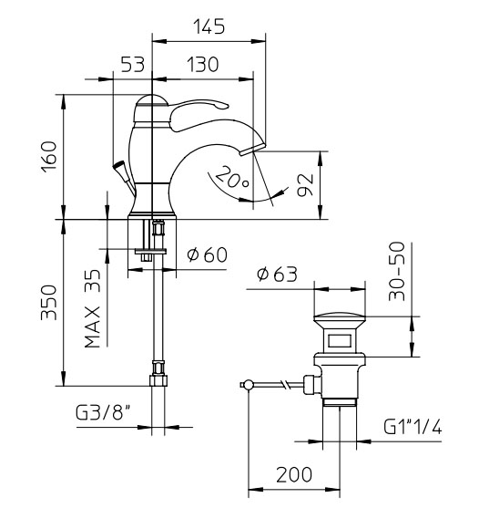 Смеситель для раковины с донным клапаном Palazzani Palace хром 26301010