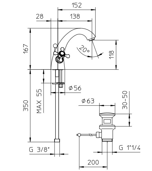 | Высота излива, см | 11,8 |