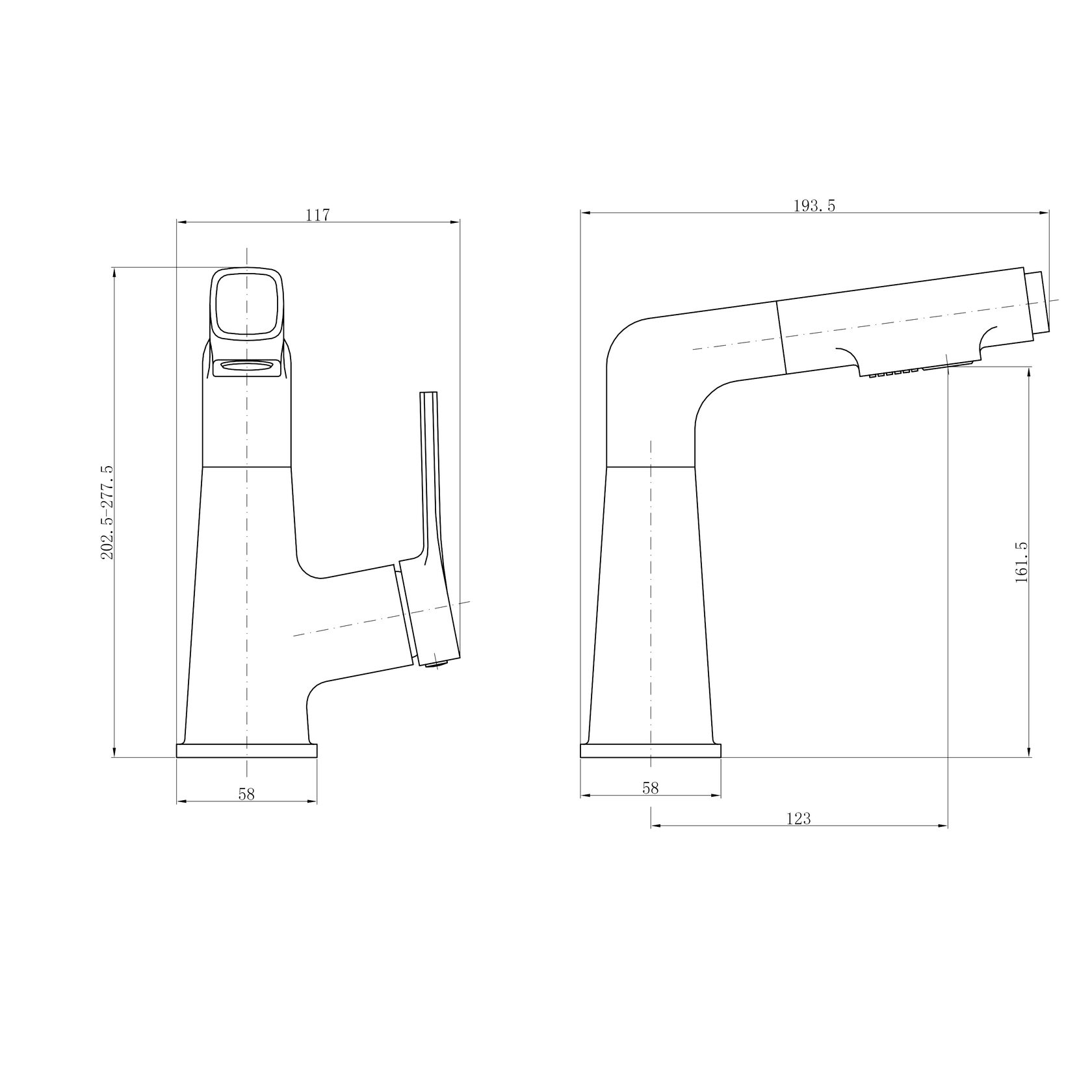с изменяемой высотой излива и выдвижной лейкой