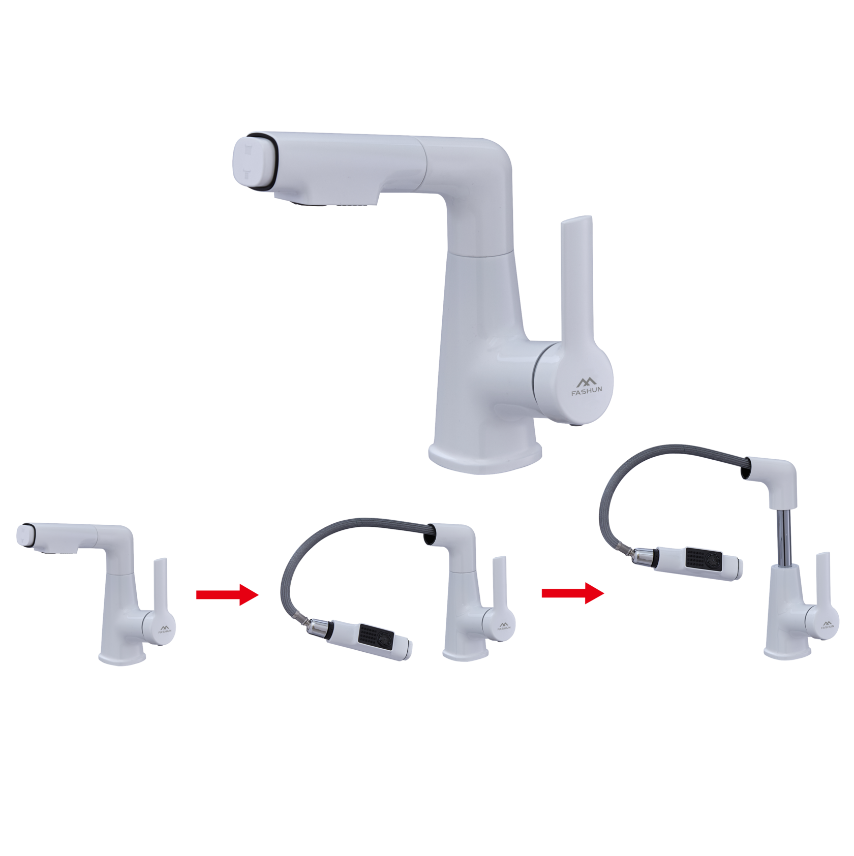 Смеситель для раковины с выдвижной лейкой Fashun A4018-8 белый