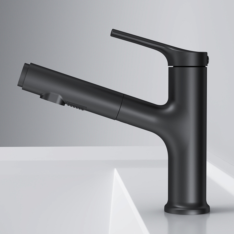 Смеситель для раковины с выдвижным изливом Am.Pm X-Joy S черный матовый F85B02922