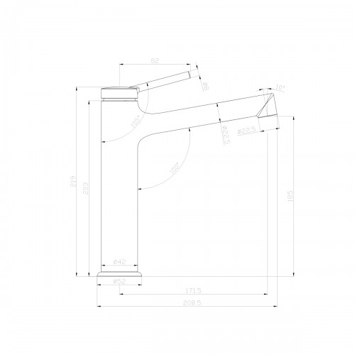 - Высота от поверхности установки до излива 185 мм