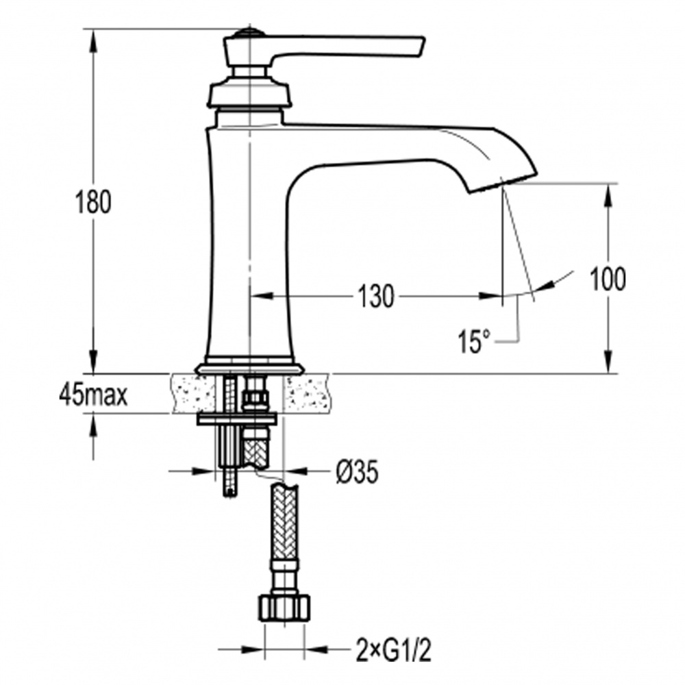 Комплект поставки: смеситель, гибкая подводка, набор креплений, инструкция