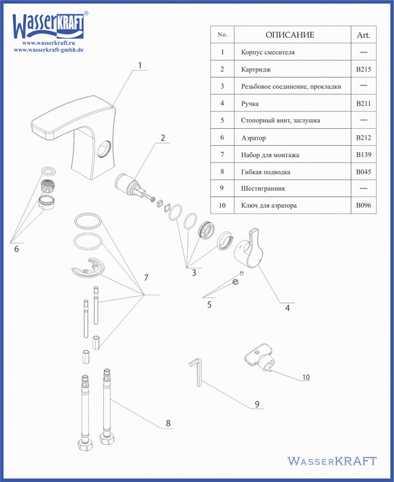 Смеситель для раковины WasserKRAFT Беркель (Berkel) хром 4803