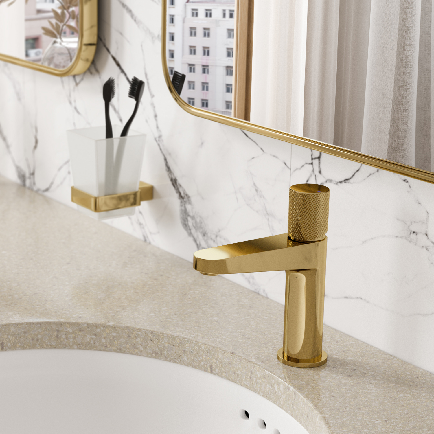 Смеситель для раковины WasserKRAFT Эмс (Ems) золото 7603