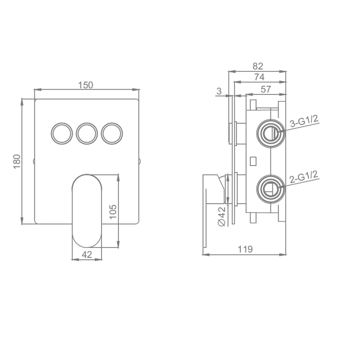 Встраиваемый смеситель для ванны и душа Raglo 3 режима графит R50.273.09