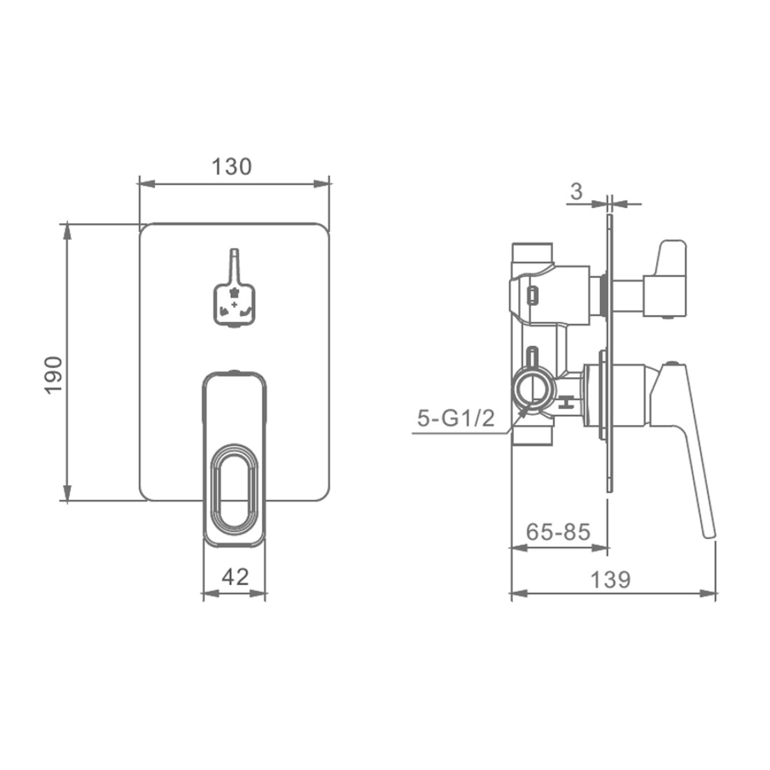 Встраиваемый смеситель для ванны и душа Raglo 3 режима хром R51.273