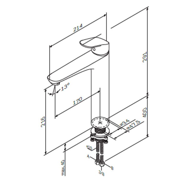 Излив: 170 мм, установка на одно отверстие, AM.PM Soft Motion 35 мм керамический картридж, Rub&Clean аэратор, гибкая подводка G 3/8“
