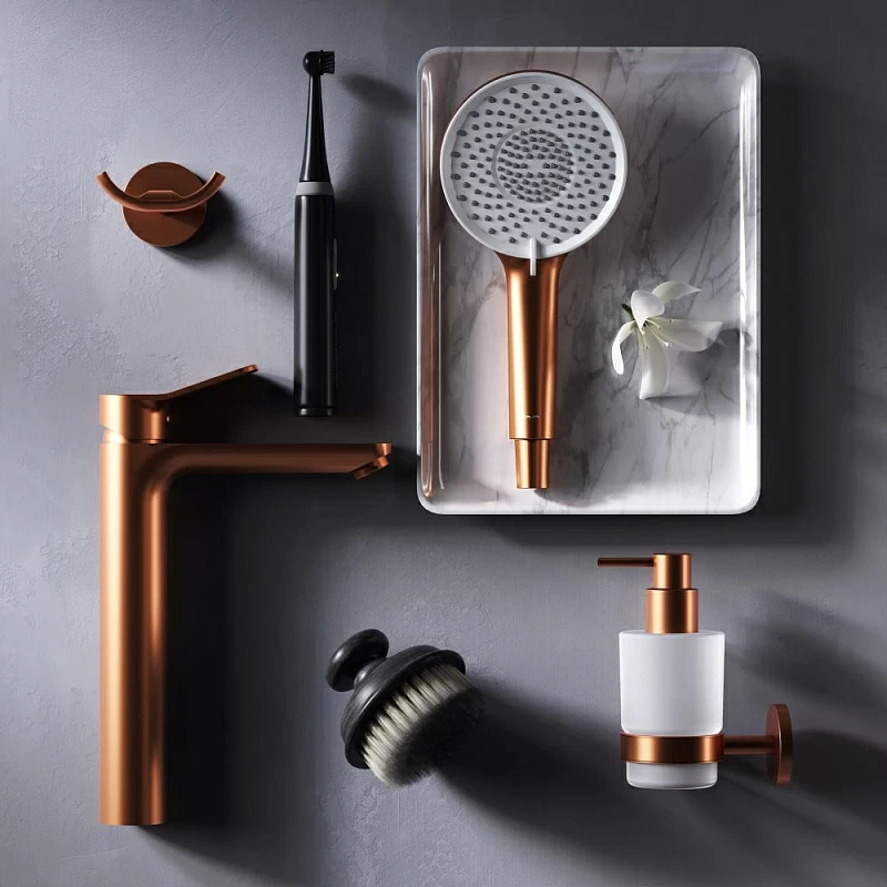Настоящее произведение ювелирного искусства в вашей ванной комнате: нежный оттенок розового золота получается методом вакуумного напыления смеси 24-каратного золота, серебра и меди, в процессе которого микрочастицы сплава образуют стойкое соединений с латунной основой.