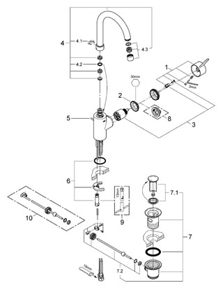 Высокий смеситель для раковины Grohe Eurosmart Cosmopolitan 32830