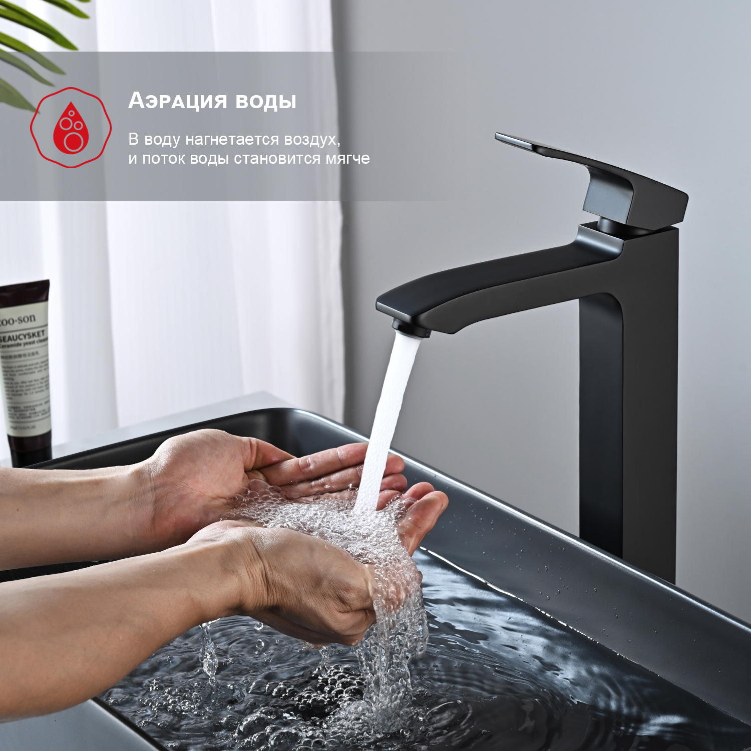Высокий смеситель для раковины Raglo R01.15.06 черный матовый